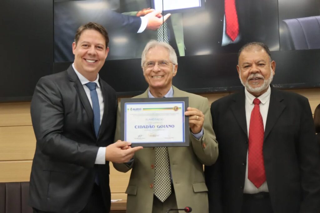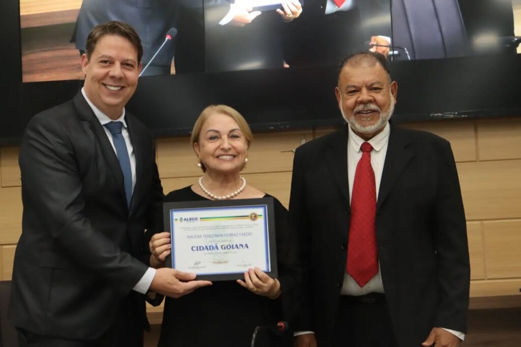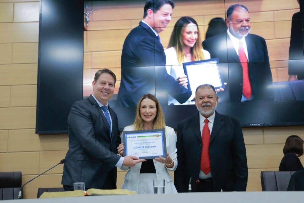 Durante a solenidade, foram entregues Títulos de Cidadania Goiana ao empresário Flávio Faedo e sua esposa Náudia Terezinha Ferraz Faedo, à produtora rural Flávia Minotto Montans, ao padre Enoques Martins da Rocha, à advogada Mirelle Gonsalez Maciel e ao engenheiro agrônomo Joel Ragagnin.