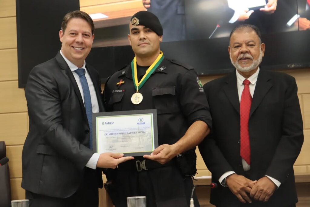 O 3º Sargento Devid Henrique Batista Silva, da Polícia Militar, também foi reconhecido com a Medalha do Mérito Legislativo Pedro Ludovico Teixeira, honraria concedida a personalidades que se destacam pela dedicação e relevantes serviços prestados à sociedade goiana.